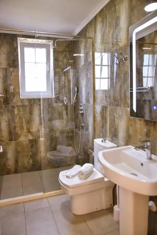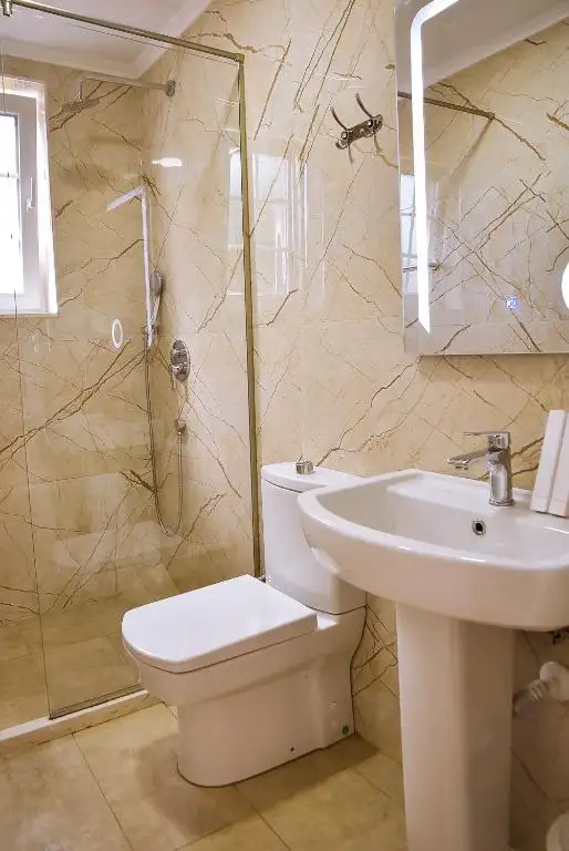 Airport Garden Hotel features accommodation with a restaurant, free private parking, a bar and a garden. The property is set 22 km from Dajti Ekspres Cable Car, 18 km from Former Residence of Enver Hoxha and 38 km from Rock of Kavaje. The accommodation offers a 24-hour front desk, airport transfers, room service and free WiFi. At the hotel rooms are fitted with air conditioning, a desk, a balcony with a garden view, a private bathroom, a flat-screen TV, bed linen and towels. The rooms have a wardrobe. House of Leaves is 17 km from Airport Garden Hotel, while Rinia Park is 18 km from the property. The nearest airport is Tirana International Mother Teresa Airport, a few steps from the accommodation.
